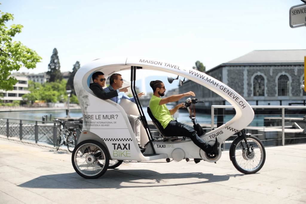 1h30: CHF 130.- / Vélo-taxi, de 1 à 2 pers.